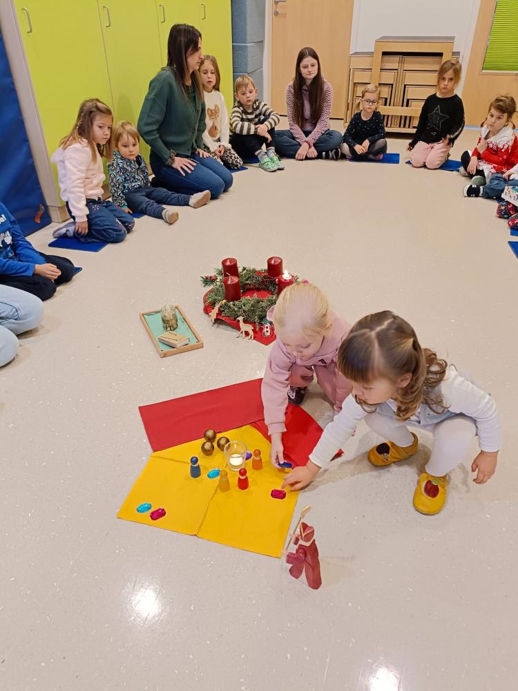 Am Freitag, den 05.12. war es endlich soweit - die lang ersehnte Nikolausfeier fand im KraKi statt! Die Kinder vom Kindergarten und der Kinderkrippe haben sich gemeinsam im Bewegungsraum getroffen. Dort hörten sie die Geschichte vom Nikolaus und den drei goldenen Kugeln und viele Weihnachtslieder wurden gesungen, als es plötzlich - klingelingeling - an der Türe läutete!